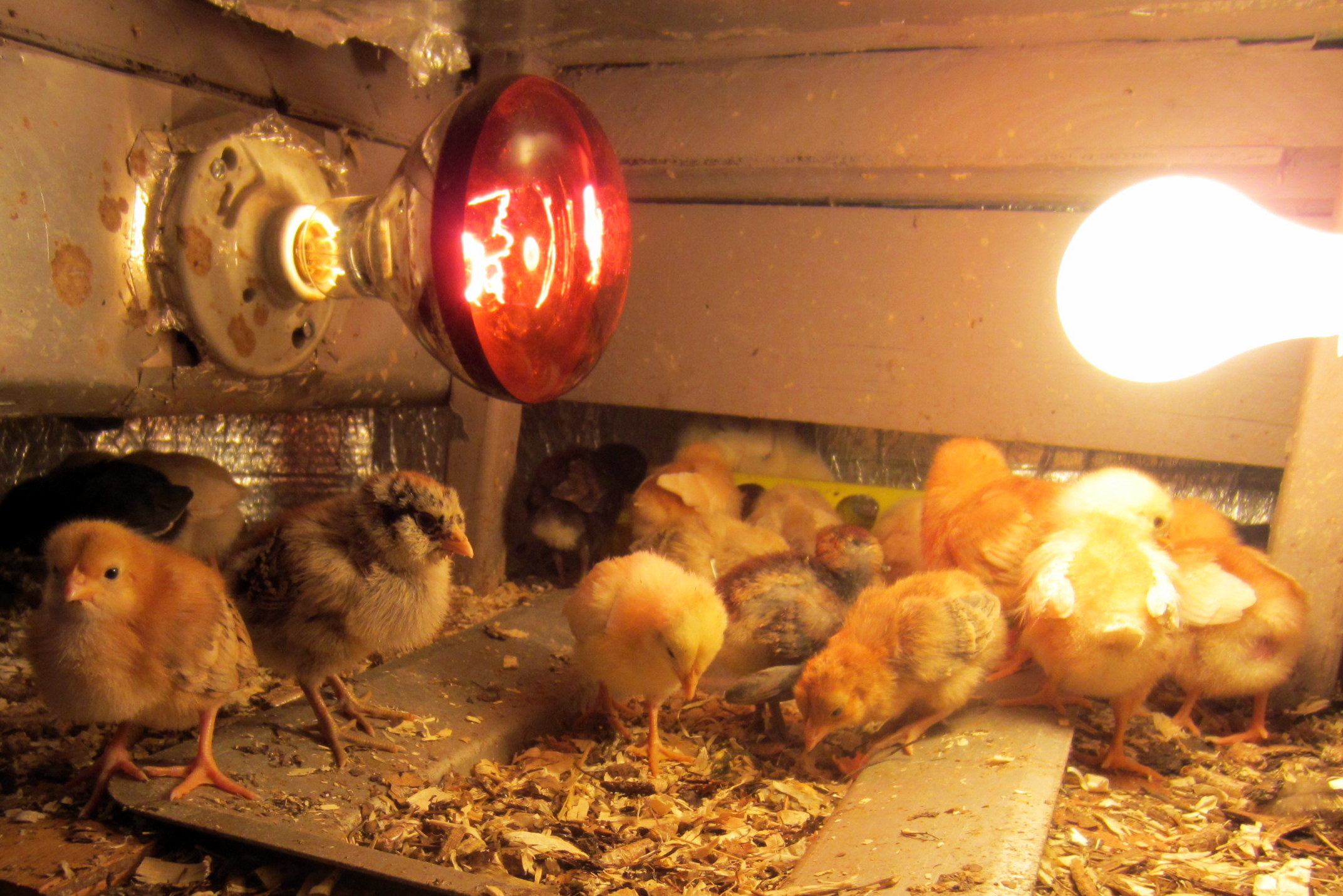 Overall, both Lydia and Olive are good broodies, just a little "crazy" at times. Last year, Lydia had so many chicks to care for & it was cold outside, I used my homemade "hover brooder". Well, Lydia decided to crawl under the hover brooder too, and positioned herself right under the light bulb (prob a 75 W).
